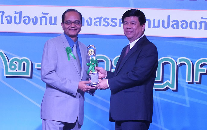 Mr. Anivesh Tewari – VP Operations representing Indorama Polyester Industries Public Co., Ltd. (Nakhon Pathom),receiving the Outstanding Establishment on Safety Occupational Health and Environment Award, National Level, for the 6th consecutive year (2010-2015).